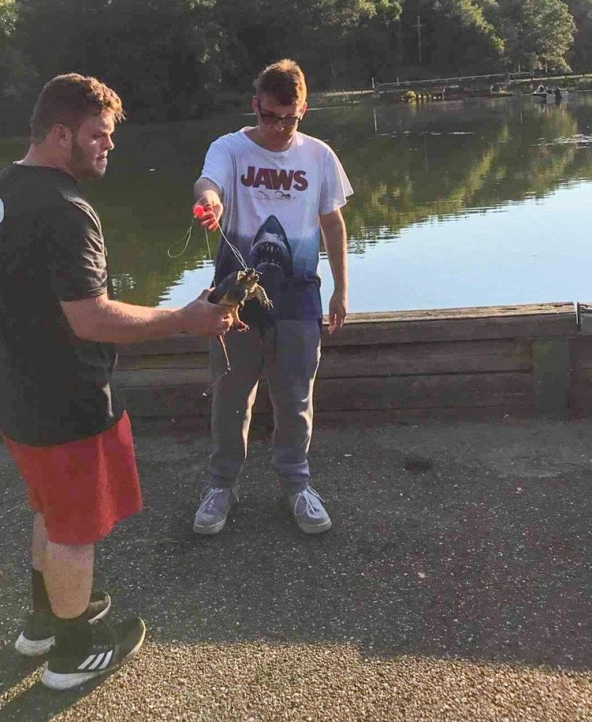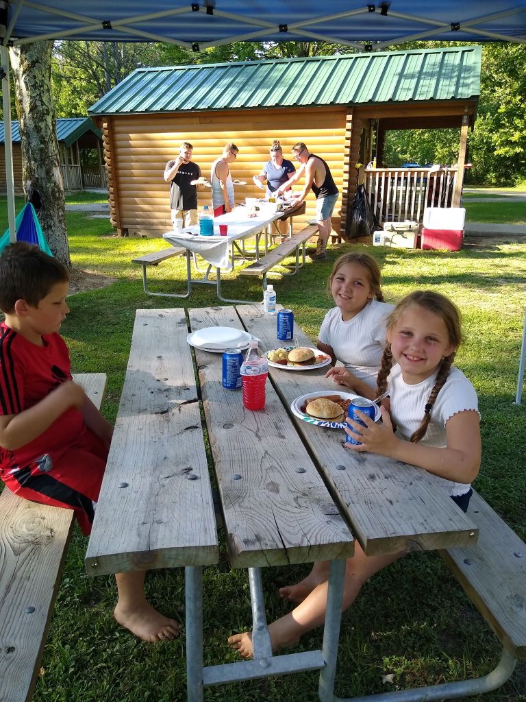 Friday evening was filled with cooking burgers on the grill and making s’mores. The kids sang songs and laughed. Then the kids went fishing and ended with Billy catching a snapping turtle.