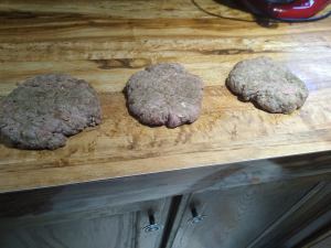 Ball 3 burger patties. Fry to your doneness (medium well).